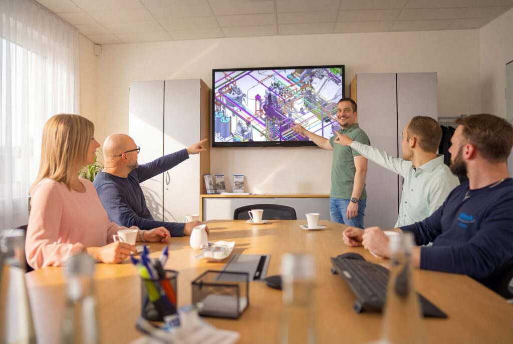 Mithilfe moderner 3D-CAD-Systeme lassen sich sämtliche Bauteile passgenau modellieren, in das geplante Layout einfügen und für die spätere Fertigung und Dokumentation aufbereiten.