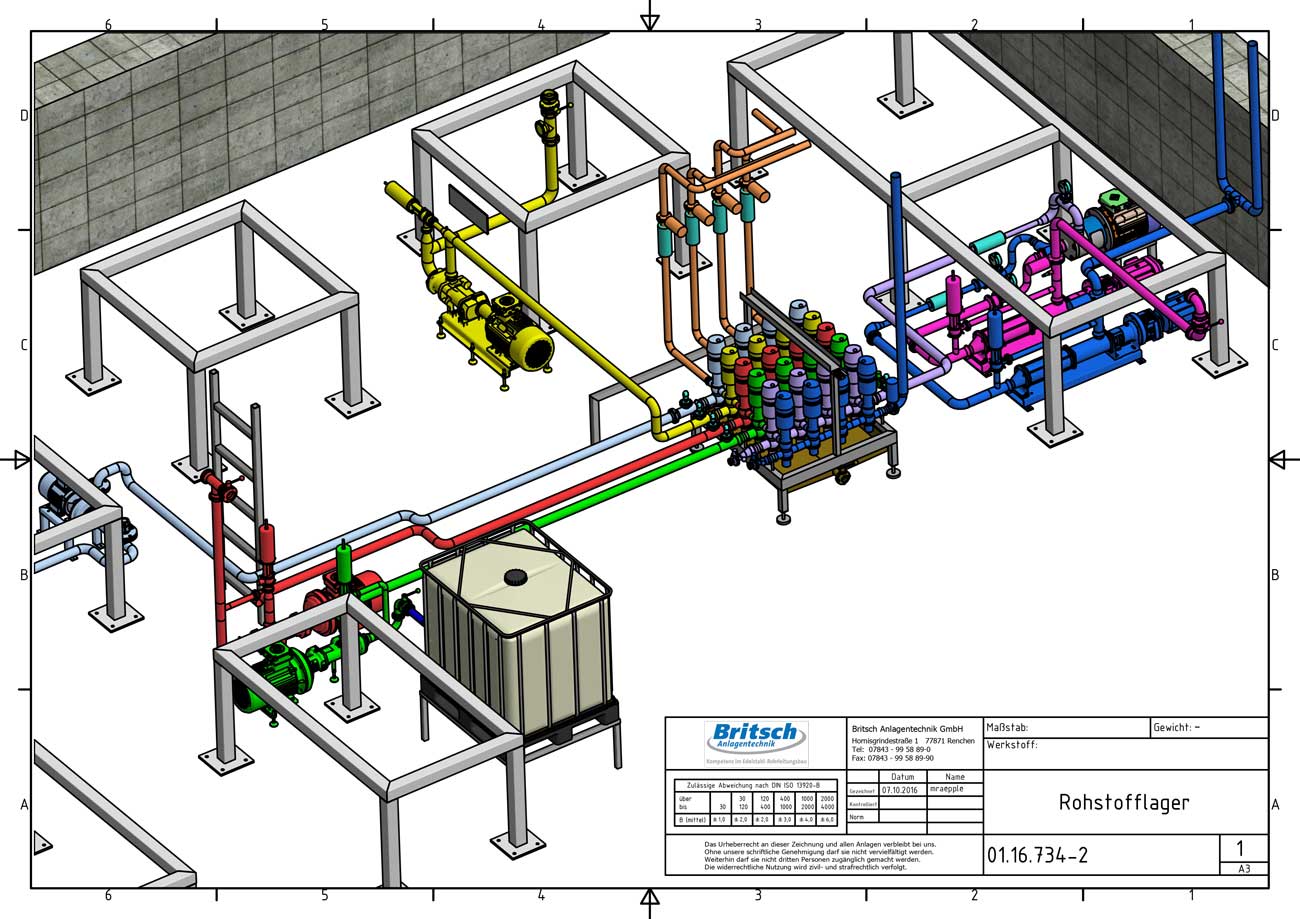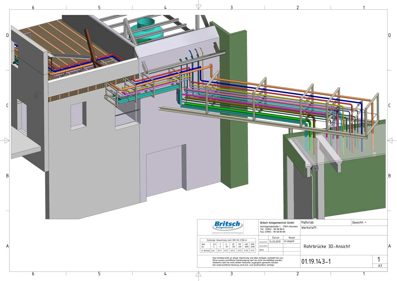 - Rohrverlaufsplanung in 3D für 21 Rohrleitungen der Dimensionen DN15 –DN125